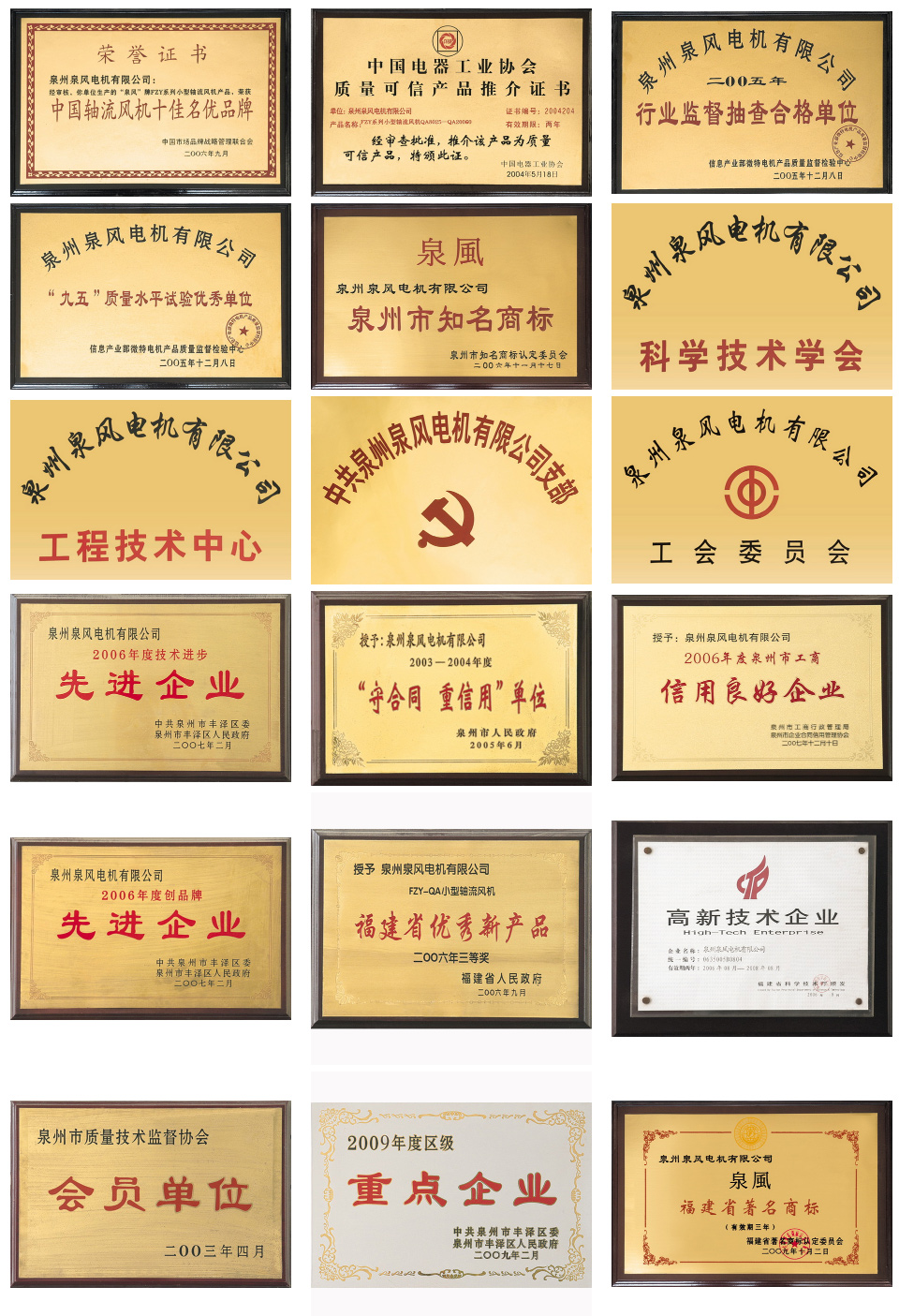 2009年“泉風”牌商標被評為“福建省著名商標”。
