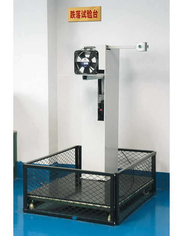 本設備可檢測產品從高處跌落后之產品抗振強度,把產品放置1米高度,然后使其自由跌落后,測試該產品外殼強度及電機內部結構緊固程度是否變化。